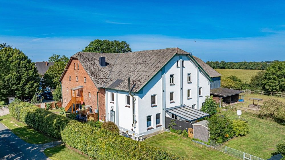 Ein Traum für Pferdefreunde steht zum Verkauf. Dieses Anwesen verfügt derzeit über zwei Wohneinheiten (beide jeweils ca. 128 m²), die man mit wenig Aufwand auch als eine große Wohnung über dann zwei Ebenen nutzen kann. Beide Wohnungen wurden laufend modernisiert und befinden sich in einem sehr gepflegten Zustand, sodass Sie hier sofort einziehen könnten. Wem der Platz noch nicht ausreicht, der freut sich über die großzügige Tenne, die von der ebenerdigen Wohnung aus erreichbar ist. Sie lässt sich vielfältig nutzen und perfekt in den Wohnbereich integrieren. Einen ersten Eindruck über die Möglichkeiten gewinnen Sie bereits bei unserem virtuellen Rundgang... Auch für Ihre Pferde wird Ihnen hier eine Menge geboten. So verfügt dieser Hof über 17 Pferdeboxen, einen Offenstallbereich, einen beleuchteten Bewegungsplatz (Wattsand, ca. 20m x 40m), Paddocks und eine professionell eingezäunte Hauskoppel von gut 3ha Größe. Ein wirkliches Paradies für Pferdeliebhaber. Reiten Sie direkt vom Hof aus los und lassen Sie die Seele baumeln...