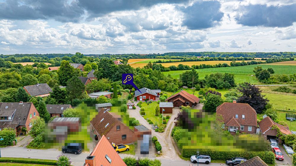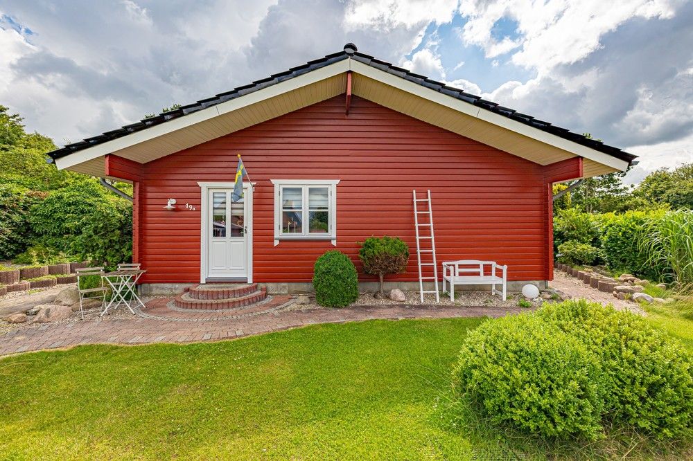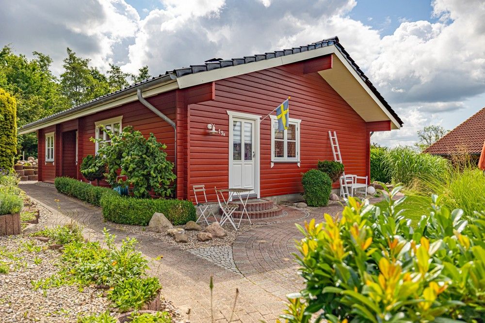Dänisches Holzhaus auf einer Ebene in dörflicher Lage