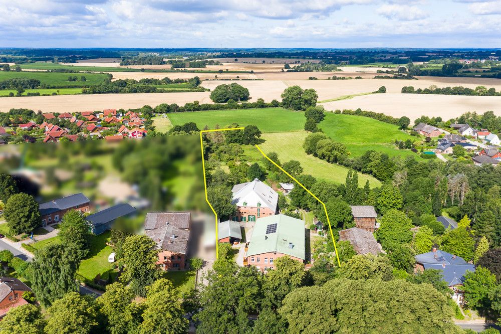 Diese Immobilie ist für den Käufer provisionsfrei! Sie können diese Immobilie vorab schon einmal virtuell besichtigen. Mit Anforderung des Exposés erhalten Sie auch den Link zum 3-D Rundgang! Heute können wir Ihnen ein top-gepflegtes Anwesen mit vielfältigen Nutzungsmöglichkeiten ans Herz legen. Es wurde seit 2015 laufend modernisiert und befindet sich in einem tadellosen Zustand. Alles wurde mit viel Liebe aufgearbeitet und alte Stilelemente wurden wieder zum Leben erweckt. Treten Sie ein und lassen Sie den originalen Fussboden und die 3 Meter hohen Decken auf sich wirken. Die Diele verfügt über einen Kaminofen und bietet ausreichend Platz für einen großen Esstisch. Im Erdgeschoss finden Sie noch eine behagliche Landhausküche, ein Bad und ein gemütliches Wohnzimmer vor. Das Obergeschoss verfügt ebenfalls über ein Bad, 3 Zimmer und eine Ausbaureserve, für den Fall, dass Sie noch etwas mehr Platz benötigen sollten. Denn wenn dieses Anwesen über etwas verfügt, dann ist es Platz - viel Platz innen wie aussen. Im kombinierten Wohn- und Wirtschaftsgebäude befinden sich neben den 3 Wohnungen auch noch eine Werkstatt und ein Stallbereich, der auch noch zu Wohnzwecken ausgebaut werden könnte. Auf dem Hofgrundstück stellt die imposante Scheune einen wahren Blickfang dar. Sie dient derzeit hauptsächlich als Stellplatz für Wohnmobile und andere Fahrzeuge und wartet nur auf Ihre Ideen, die Sie hier verwirklichen möchten... Hinter der Scheune finden Sie eine grüne Oase vor. Von der schönen Holzterrasse aus geniessen Sie den Weitblick über den wundervoll angelegten Garten mit seinem alten Obstbaumbestand. Hier kann man die Seele baumeln lassen. Eine kleine Hauskoppel mit Offenstall bietet Ihnen auch die Möglichkeit zur Pferdehaltung. Besonders erwähnenswert ist noch die nagelneue PV-Anlage, die Sie mit günstigem Strom versorgt. Eine eigene "Elektro-Tankstelle" rundet das Angebot ab. Auf Wunsch halten wir weitere aussagekräftige Unterlagen für Sie bereit - Rufen Sie mich gerne an!
