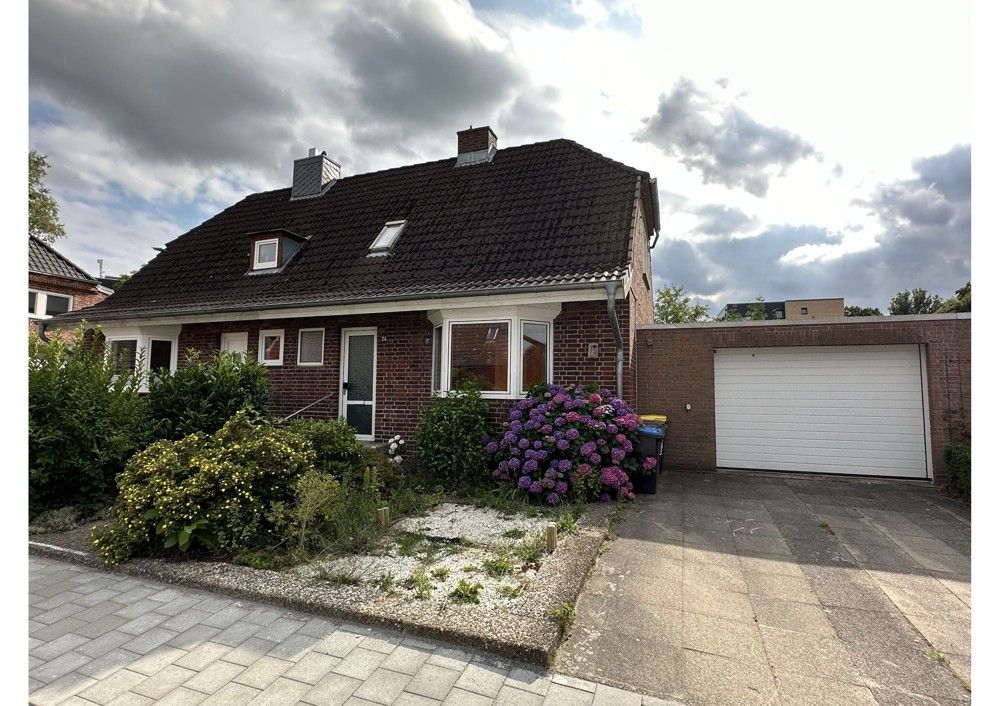 Die Doppelhaushälfte wurde 1935 in massiver Bauweise erstellt und befindet sich in einer ruhigen Sackgasse in Projensdorf, dem Westteil des beliebten Kieler Stadtteils Wik.