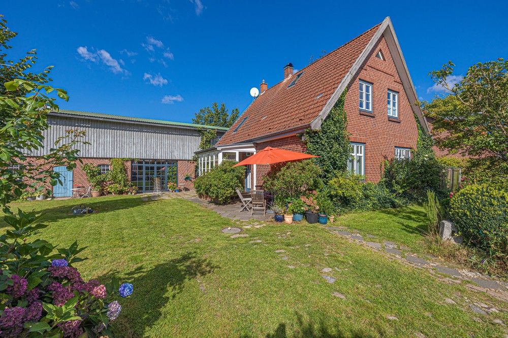 Ruheoase mit rustikalem Charme bei Elmshorn. Ländlich und dennoch zentral - Hier können Sie einerseits die absolute Ruhe auf Ihrem Traumgrundstück genießen und andererseits fußläufig alle Einrichtungen des täglichen Bedarfs erreichen. Beim Betreten des Grundstücks empfängt Sie ein großer, gepflegter Vorgarten. Das Wohnhaus selbst ist eingerahmt von alten Obstbäumen, Wiesen und Sträuchern. Von der überdachten Terrasse aus genießen Sie den Blick über den Garten auf die mögliche Pachtweide. Hier kann man die Seele baumeln lassen. Das liebevoll gestaltete Anwesen hat Ihnen eine Menge zu bieten. Insgesamt 8 Zimmer verteilen sich auf knapp 300 m² Wohnfläche und 2 Ebenen. Besonders erwähnenswert ist hier der fast 100 m² große Wohnsaal, der mit einem neuen Terrazzofußboden und Fußbodenheizung ausgestattet wurde. Ein Kaminofen sorgt nicht nur im Winter für wohlige Wärme. Dieser Raum versprüht einfach Charme und lässt sich vielfältig nutzen - Feiern mit bis zu 200 Gästen, Ausstellungen und Theateraufführungen um nur einige Möglichkeiten zu nennen. Künstler und Freigeister werden dieses besondere Wohngefühl zu schätzen wissen... Das großzügige Wohnangebot lässt sich aber auch mit wenig Aufwand in 2 Wohnungen aufteilen und bietet sich somit ideal für das Mehrgenerationswohnen an. Weiterhin gibt es im direkt angrenzenden Stallbereich noch erhebliches Ausbaupotential. Hier sind Ihre Ideen gefragt... Auch Tierfreunde kommen hier auf ihre Kosten. Die derzeitigen Eigentümer haben direkt angrenzend an den Garten eine Weidefläche von etwa 1,5ha angepachtet. Wenn Sie also auf der Suche nach einem besonderen Anwesen, welches Ihnen viele Gestaltungsmöglichkeiten bietet sind und die Nähe zur Großstadt nicht missen möchten, dann sollten Sie sich dieses Angebot einmal genauer anschauen...