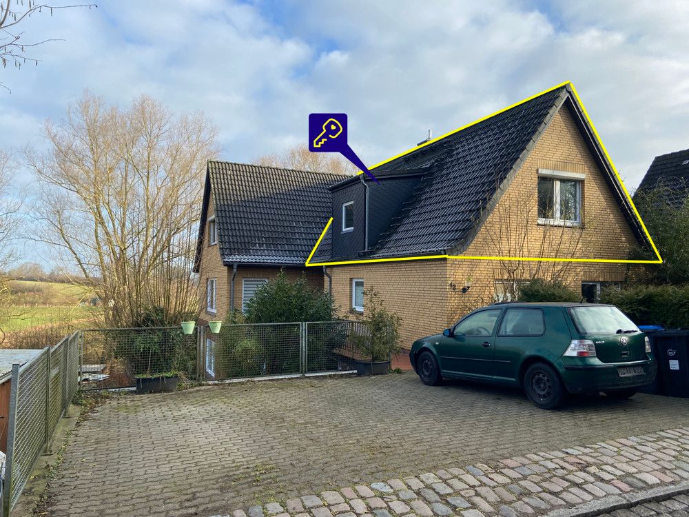 Die Ein-Zimmer-Wohnung befindet sich im Dachgeschoss eines massiv erbauten und erweiterten Mehrfamilienhauses mit fünf Wohneinheiten. Auf ca. 30 m² stehen Ihnen ein Wohn-/Schlafzimmer mit Außenrolladen, eine Küche und ein Duschbad – beide mit Gaube - zur Verfügung. Ein offenes Wort: Die Wohnung ist verwohnt und daher renovierungs-/sanierungsbedürftig. Der Garten steht im Gemeinschaftseigentum, praktisch ist er zur Nutzung aufgeteilt worden: Der Eigentümer dieser Wohnung hat bisher den Gartenteil genutzt, der links vor der Treppe liegt, die in den unteren Garten führt. Vom Garten haben Sie einen wunderschönen Ausblick in die Hügellandschaft in Richtung Nord-Ostsee-Kanal, manchmal können Sie die Aufbauten der vorbeifahrenden Schiffe sehen. Ein zur Wohnung gehörender, kleiner Kellerraum sowie ein Stellplatz rechts vor dem Haus runden das Angebot ab.