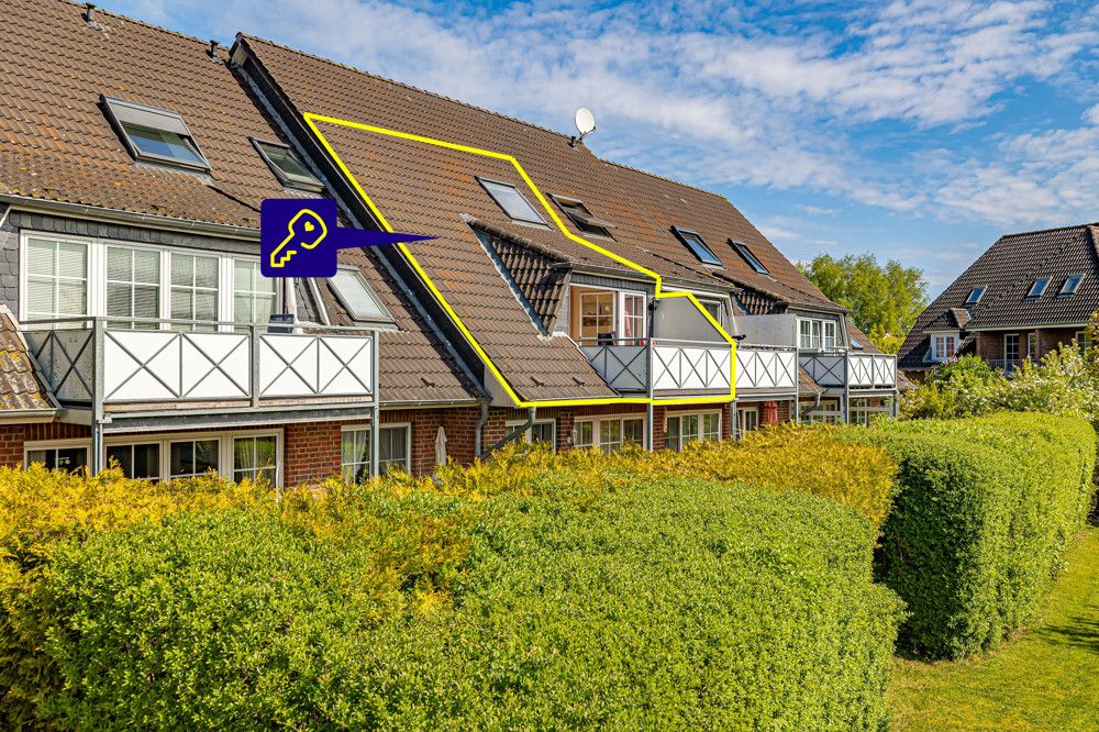 Diese schöne Maisonette-Wohnung befindet sich im ersten Ober- und Dachgeschoss einer überschaubaren Wohnanlage mit 17 Einheiten. Sie besticht nicht nur durch ihre strandnahe Lage, sondern auch durch ihren gepflegten und guten Zustand. Die Wohnung hat eine Wohnfläche von ca. 55 m². Das Wohnzimmer mit Essbereich und offener Küchenzeile ist, wie die gesamte Wohnung, hell und lichtdurchflutet und vermittelt eine angenehme Atmosphäre. Über eine Doppelflügeltür gelangen Sie auf den großen Balkon ins Süd-Ost-Lage, wo Sie die Sonne und die Ruhe genießen können. Das Schlafzimmer erreichen Sie entweder über die Raumspartreppe vom Wohnzimmer aus oder über den eigenen Zugang vom Hausflur. Es bietet Ihnen viel Platz und ist durch das große Dachschrägenfenster ebenfalls hell und freundlich. Das innenliegende Badezimmer ist hell gefliest und verfügt über eine Dusche.