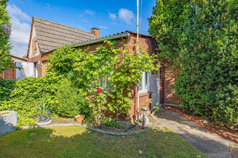 Das Haus und das direkt angeschlossene Nebengebäude haben insgesamt eine Wohn- und Nutzfläche von ca. 163 m². Im Haupthaus mit einer Wohnfläche von ca. 128 m² befinden sich fünf Zimmer, die einer Familie ausreichend Platz bieten. Das Erdgeschoss besteht aus dem Wohn-Esszimmer, zwei Schlafzimmern und der Küche. Neben der Küche befindet sich eine praktische Speisekammer. Das ehemalige Stallgebäude hinter der Küche wurde nachträglich wohnlich ausgebaut: Entstanden ist ein zusätzliches Arbeitszimmer, das Badezimmer mit Dusche und ein gemütlicher Essraum (Nutzfläche von ca. 35 m²). Von hier aus gelangen Sie in den Garten, der Ihnen stets ein sonniges Plätzchen im Grünen bietet. An regnerischen Sommertagen steht Ihnen ein praktischer Pavillion zur Verfügung.