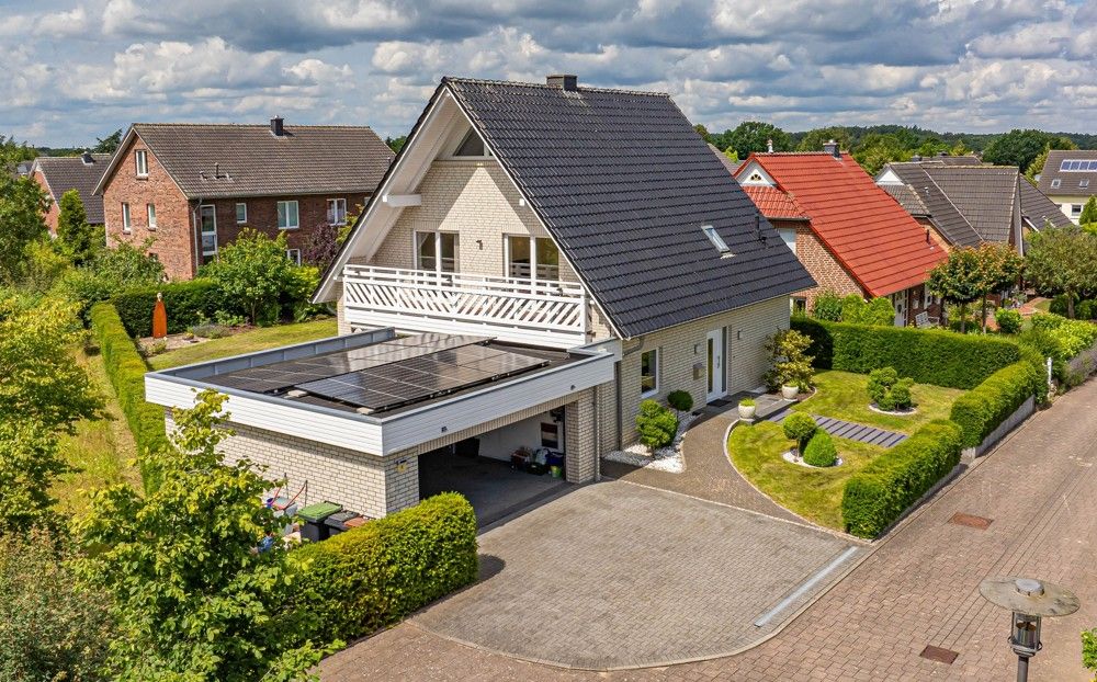 Ein Großteil des Hauses ist mit einer Fußbodenheizung ausgestattet und sorgt für eine wohlige Wärme. Auch in Sachen Energieeffizienz steht die Immobilie gut da. Solarthermie für Warmwasser und eine PV-Anlage mit Speicher und Wallbox sind vorhanden. Eine Doppelgarage mit elektrischem Tor und ein Abstellraum bieten viel Platz für Autos, Fahrräder und Ihre Gartengeräte.