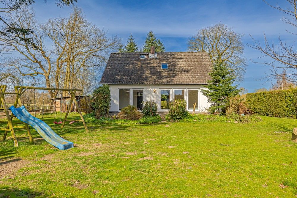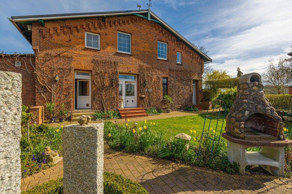 Doch nicht nur Ihre Vierbeiner finden hier ausreichend Platz vor, auch für die Zweibeiner ist genügend Wohnraum vorhanden. Neben dem Eigentümerhaus steht Ihnen noch ein weiteres Wohnhaus zur Verfügung und so bietet sich das Anwesen auch ideal für das Mehrgenerationswohnen an. Das Eigentümerhaus kann man als Doppelhaus-Resthof bezeichnen, wovon eine Hälfte Ihnen gehören wird. Die gut 200 m² Wohnfläche verteilen sich auf 2 Ebenen. Im großzügigen Garten mit seinem alten Baumbestand finden Sie auch eine gemütliche Gartenlaube und einen kleinen Teich vor. Hier kann man die Seele baumeln lassen und den Weitblick über das eigene Land genießen. Das Altenteilerhaus liegt etwas abseits und verfügt ebenfalls über einen wunderschönen Garten mit Blick auf die Koppeln. Hier hat man die Pferde immer im Blick. Das Haus hält etwa 128 m² Wohnfläche und einen Vollkeller mit separatem Eingang für Sie bereit. Viel Platz für Mensch und Tier...