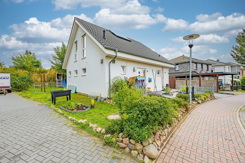Abgerundet wird dieses Angebot durch ein Gartenhaus für Fahrräder und Gartengeräte. Bis zu zwei Pkws können Sie bequem auf dem eigenen Grundstück parken.