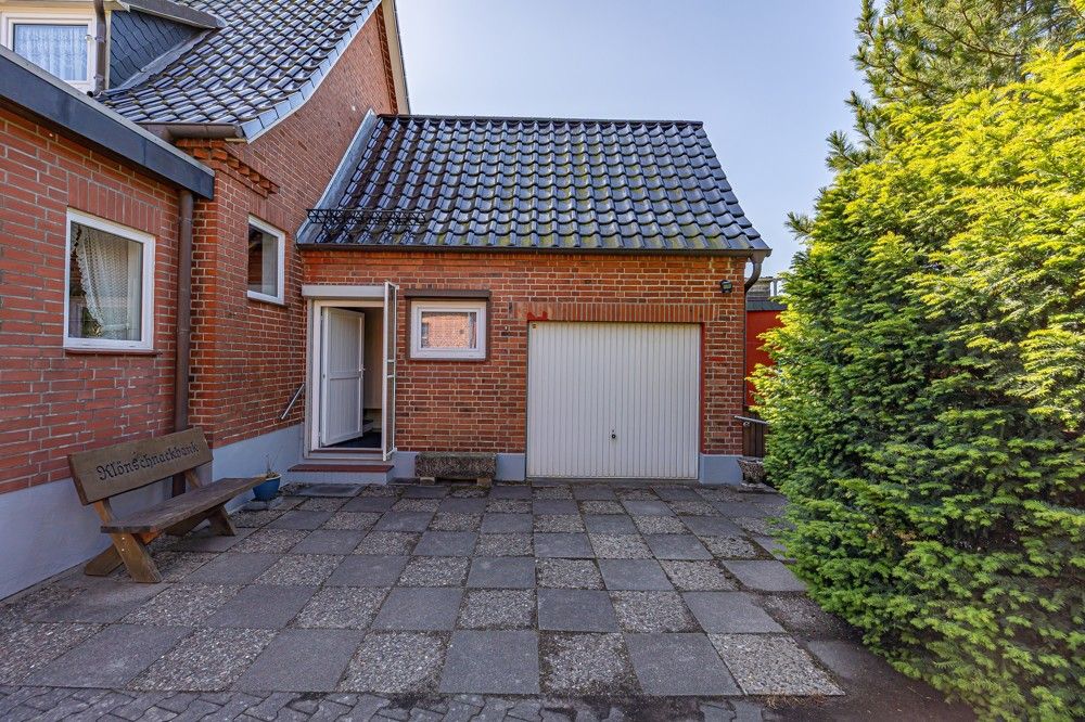 Eine Garage befindet sich direkt neben dem Abstellraum, die Durchgangstür zum Haus ist zugemauert; zusätzlich gibt es noch eine zweite Garage. Die separate Werkstatt bietet viel Platz und ist ideal für den Handwerker. Dahinter befindet sich die Terrasse, zusätzlich gibt es ein großes Gartenhaus. Im schönen Garten können Sie wunderbar entspannen und die Sonne genießen.