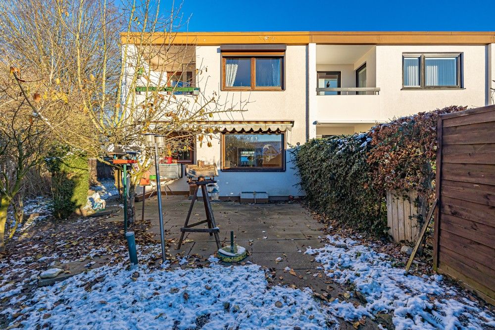 Dieses 1972 massiv errichtete Reihenendhaus eignet sich gut für eine Familie. Empfangen werden Sie von einem Windfang, von dem es in den Flur geht. Neben einer praktischen Küche und dem Gäste-WC können Sie im Erdgeschoss das großzügige Wohn-/Esszimmer mit Kaminofen nach Ihren Wünschen und Vorstellungen gestalten. Vom Wohnzimmer gelangen Sie auf die Terrasse in Südlage, wo Sie die Sonne genießen können. Über eine Holztreppe erreichen Sie das Obergeschoss, dessen Räume aufgrund des Flachdaches keine Schrägen haben. Dort können Sie ein großes Schlafzimmer mit Balkon, eineinhalb weitere Zimmer und ein Wannenbad nutzen. Das Haus ist voll unterkellert, der Keller ist sowohl von innen als auch von außen zugänglich. Im großen Heizungsraum ist neben der Ölheizung noch Platz für eine Werkstatt. Weiterhin stehen Ihnen ein großer Hobbyraum und zwei kleine Räume zur Verfügung. Im Garten können Sie wunderbar entspannen und die Kinder haben Platz zum Spielen - hinter der Terrasse ist der Garten nach Süden ausgerichtet, neben dem Haus nach Westen. Abgerundet wird dieses Immobilienangebot durch ein Carport mit Schuppen sowie einem Stellplatz davor. Wenn Sie in Raisdorf ein neues Zuhause suchen, dann sollten Sie sich dieses Angebot näher ansehen. Auf Anfrage senden wir Ihnen gern eine virtuelle 3D-Ansicht der Immobilie sowie ein Immobilienvideo und weitere Unterlagen. Wir freuen uns auf Ihre Anfrage.