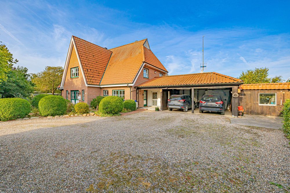 Im Erdgeschoss werden Sie von der großen, lichdurchfluteten Diele in Empfang genommen. Von hier aus erreichen Sie den offenen Wohnbereich, ein Gästezimmer, ein Duschbad sowie die beiden Küchen und ein separates Gäste-WC. Von einer der Küchen haben Sie Zugang zur Terrasse und dem großen, sonnenverwöhnten und gepflegten Grundstück. Das über 3800 m² große Grundstück ist eingezäunt und bietet Ihnen viel Platz und mehrere kleine Nebengebäude sowie ein großes Holzlager sorgen für viele Möglichkeiten.