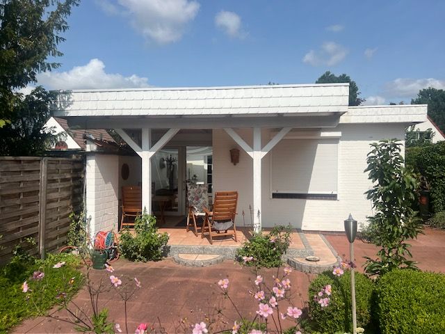 Die zweite Wohnung befindet sich im hinteren Bereich und wird sehr erfolgreich an Feriengäste vermietet. Der Anbau ist ca. 20 Jahre alt. Mit den aktuellen Erträgen könnten die Käufer den größten Teil des Kaufpreises finanzieren. Alle Räume der Einliegerwohnung befinden sich im Erdgeschoss. Im Wohnzimmer sorgt ein historischer Specksteinofen für eine gemütliche Wärme. Das modernisierte Bad verfügt über ein ebenerdiges Duschbad. Von der überdachten Sonnenterrasse und vom Wintergarten haben Sie einen Zugang zum pflegeleichtem, eingezäuntem und uneinsehbarem Garten.